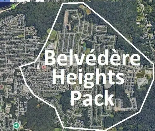 Belvedere-Heights has an estimated 4000+ residents, 400+ dogs, and some great forest walking trails
